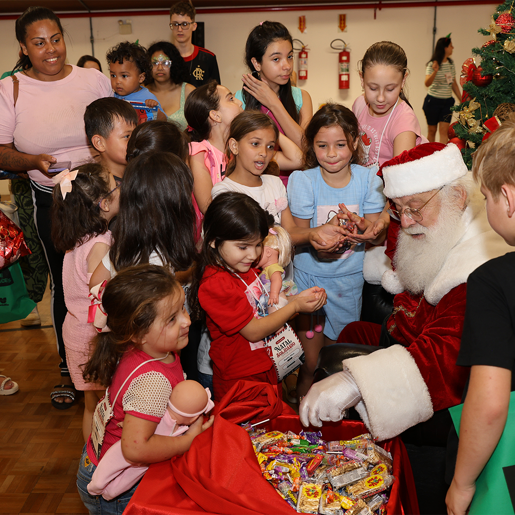 Nesta edição, 200 crianças da Missão Solidariedade, do bairro Paranaguamirim, e do Instituto Esperança, no Morro do Meio, foram contempladas. O evento reuniu todos em uma manhã especial, com café, brinquedos, guloseimas e a aguardada visita do Papai Noel. Confira no vídeo: